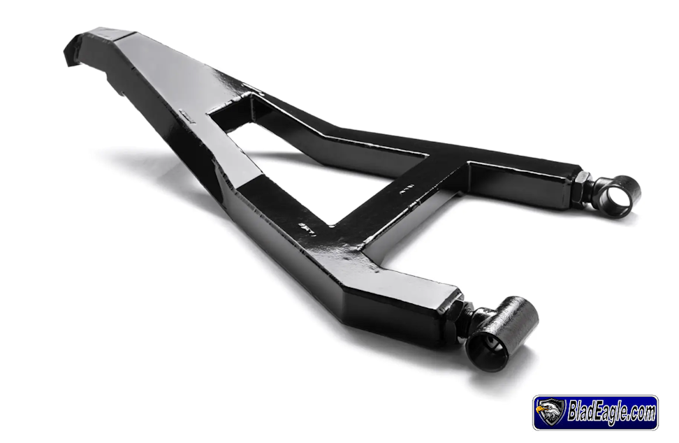 Kit Triangles avant Incurvés Sidewinder. Offset de 1.5″ (3.8cm) permet d’utilisé des pneu jusqu’à 35 pouces. Augmente la grade au sol de 3.8cm. Conception type Trophy truck en tôle de 3mm pour une résistance extrême . Triangles inferieurs montés sur pivots réglables afin d’ajuster la géométrie de la machine. Livrés sans rotule.